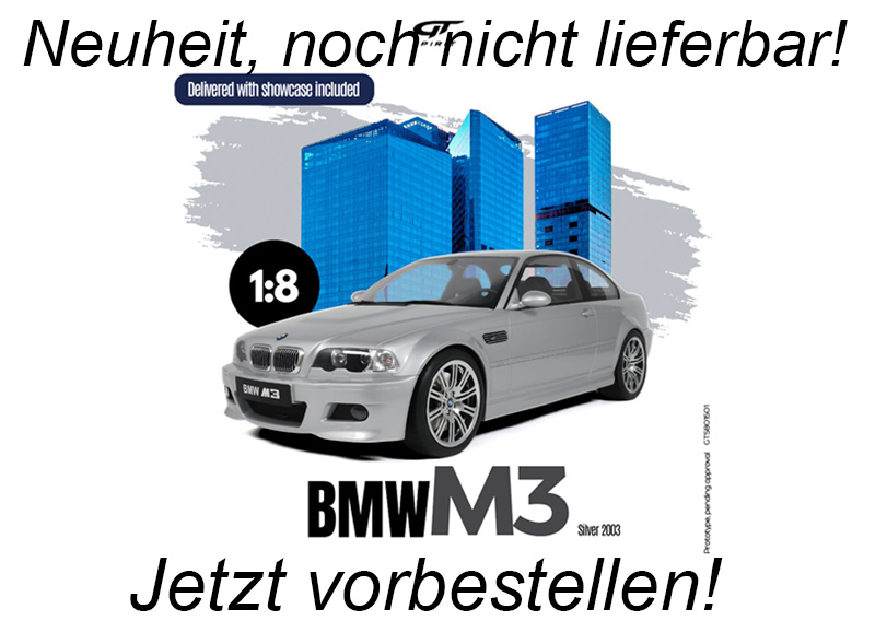 BMW M3 E46 SILVER 2003 GT Spirit 1:8 Resinemodell (Türen, Motorhaube... nicht zu öffnen!)