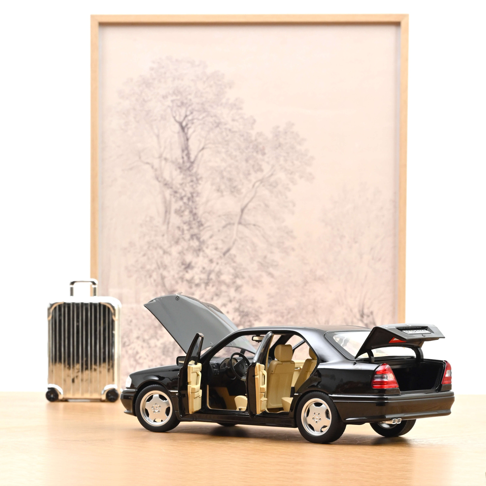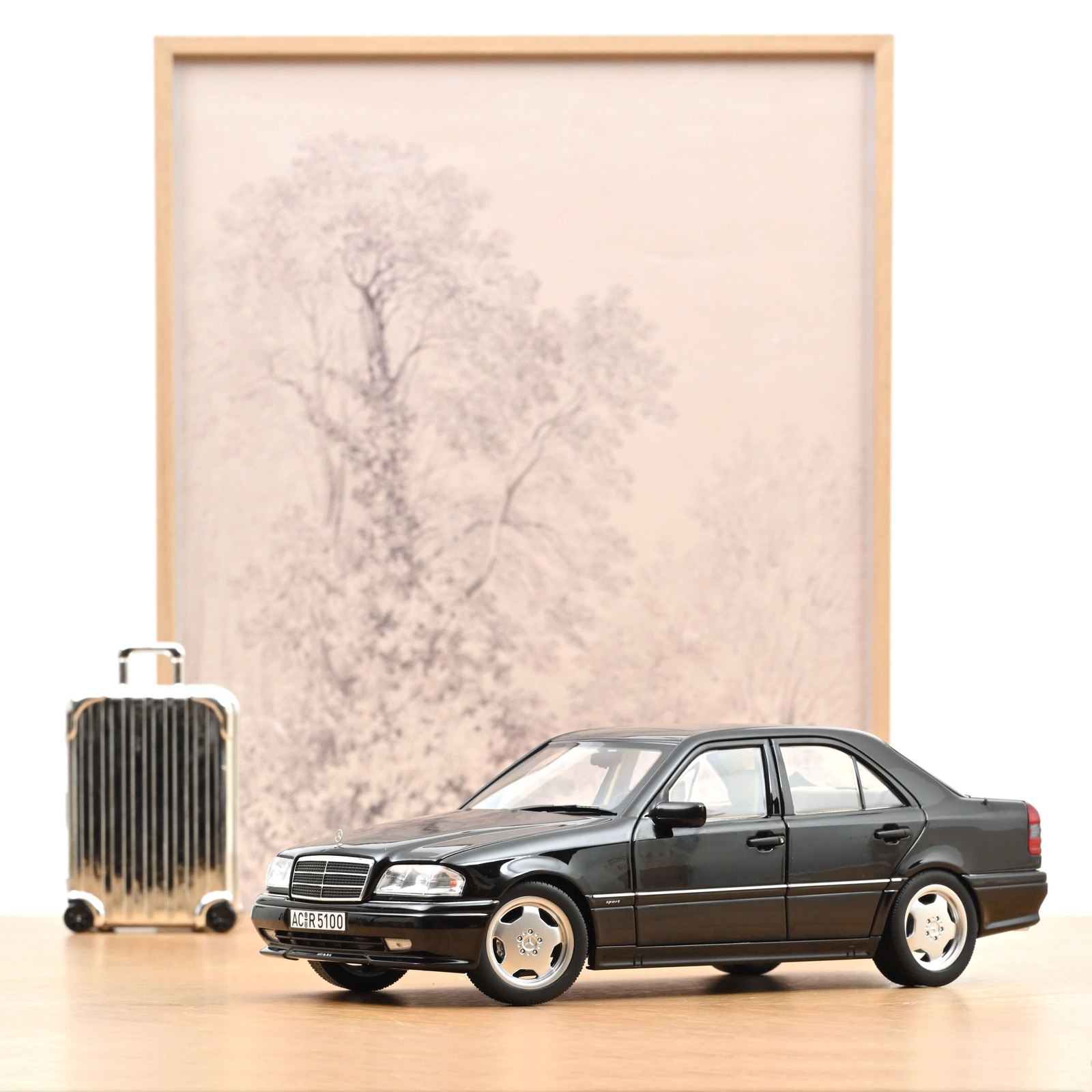 Mercedes-Benz C36 AMG 1993 Obsidian Black metallic  Norev 1:18 Metallmodell 4 Türen, Motorhaube und Kofferraum zu öffnen!
