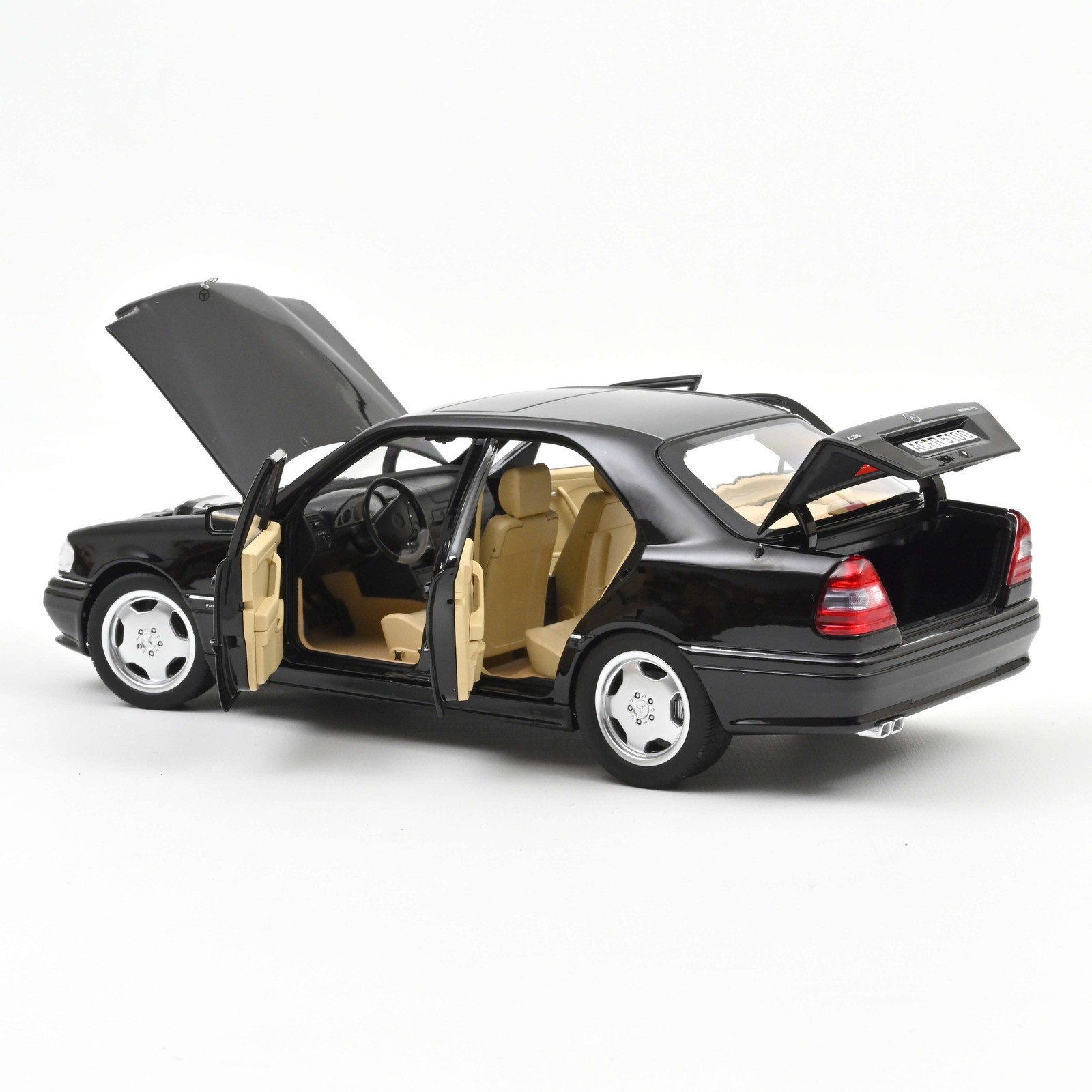 Mercedes-Benz C36 AMG 1993 Obsidian Black metallic Norev 1:18 Metallmodell 4 Türen, Motorhaube und Kofferraum zu öffnen!