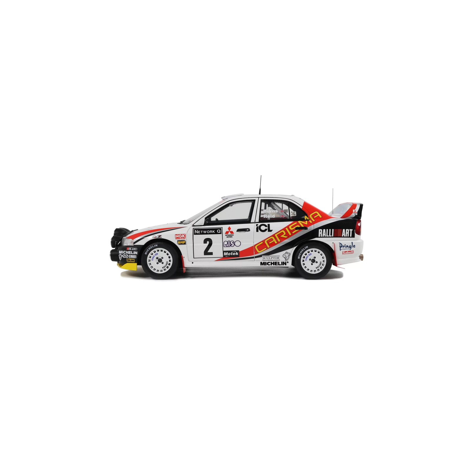 Richard Burns, seit 1996 Mitsubishi-Fahrer, setzt seine Ausbildung mit einem Teilprogramm in der Rallye-Weltmeisterschaft für die Saison 1997 fort. Zu diesem Zweck vertraut ihm Mitsubishi das Lenkrad des Carisma GT an. In Wirklichkeit handelt es sich um einen Lancer Evo IV, der aus Marketinggründen umbenannt wurde, da der Lancer in einigen Ländern unter dem Namen Carisma vermarktet wird. Die Saison 97 endete für Burns zu Hause bei der legendären RAC Rally. Auf seinem Heimatrevier glänzte er und führte die Rallye zur Halbzeit sogar an. Leider verlor er auf WP 21 durch einen Reifenschaden mehrere Minuten und stürzte am Fuße des Podiums. Ein vierter Platz mit einem bitteren Beigeschmack, der aber die ganze Bandbreite des Talents des britischen Fahrers beweist! Übrigens wird er sich im folgenden Jahr bei der RAC revanchieren, als er seinen zweiten WM-Sieg mit dem Carisma feiert!