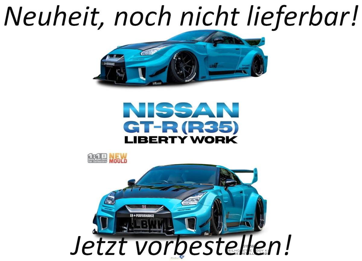 NISSAN GT-R (R35) LIBERTY WALK SILHOUETTE BODY KIT BLUE METALLIC 2025 S1815602 Solido 1:18 Metallmodell