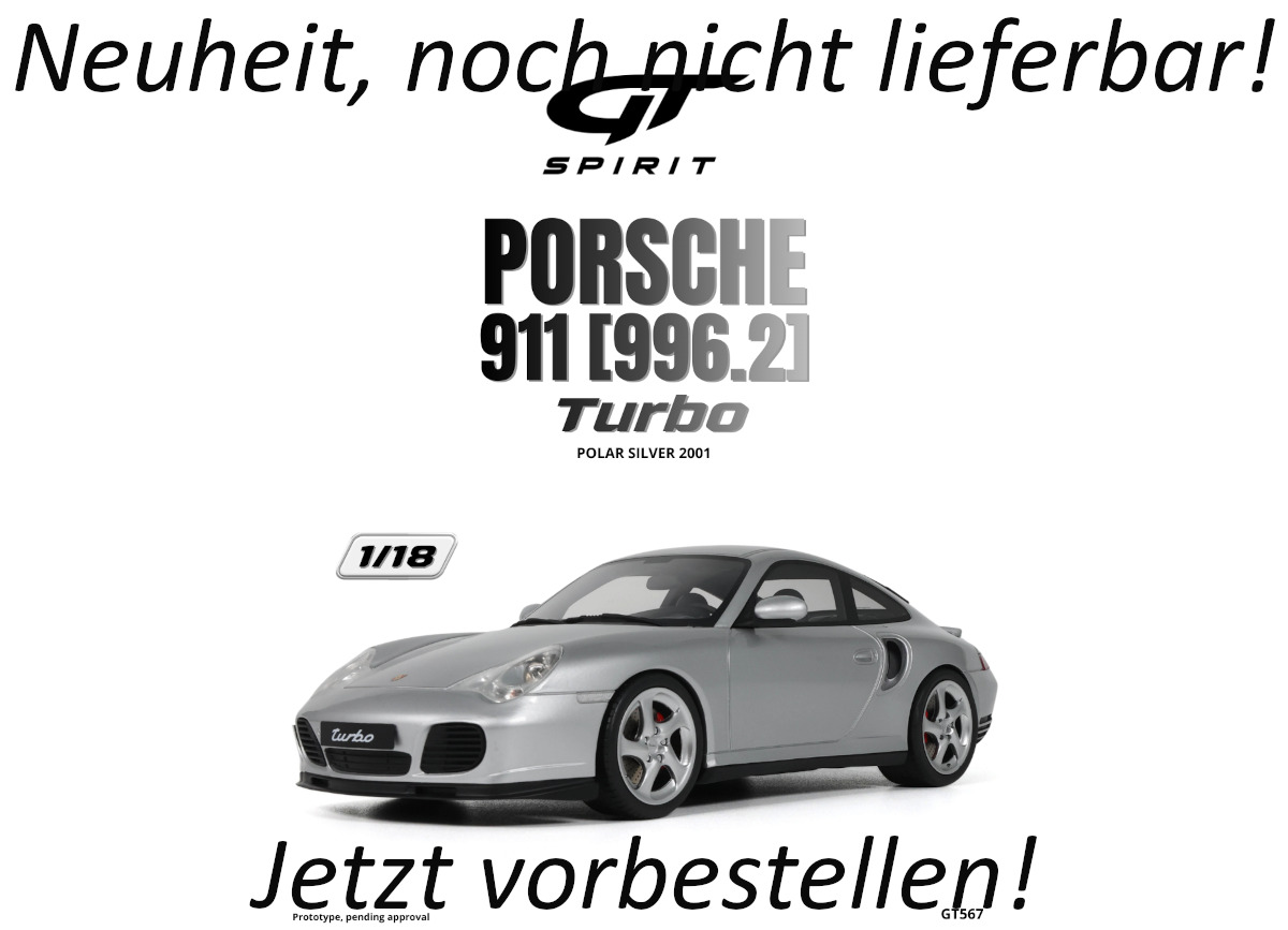 PORSCHE 911 [996.2] TURBO POLAR SILVER 2001 GT Spirit 1:18 Resinemodell (Türen, Motorhaube... nicht zu öffnen!)